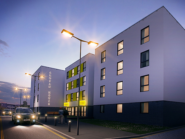 This student accommodation project comprises a U-shape 4-storey light gauge steel frame building on a brownfield site in the centre of Cardiff. The accommodation includes 117 studios and 164 en-suite beds in clusters of 6 with cluster kitchens, plus a gym. Midas will complete the project to offer fully fitted student accommodation with all fixtures and fittings, minor landscaping to the courtyard, storm water attenuation and drainage connection to the main road.