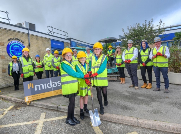 Excited pupils donned their site gear and picked up a spade to signal the start of work on a major extension to their school in Redruth.