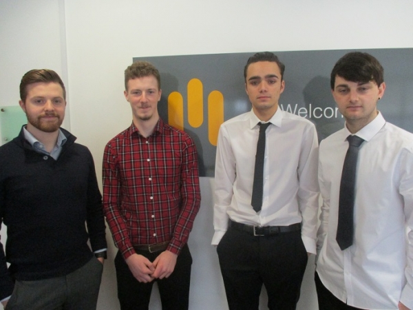 Image L-R: Chris Cowan, Trainee QS; James Hazzard, Management Trainee; Anjay Chauhan, Work Experience and Josh Burns, Work Experience.